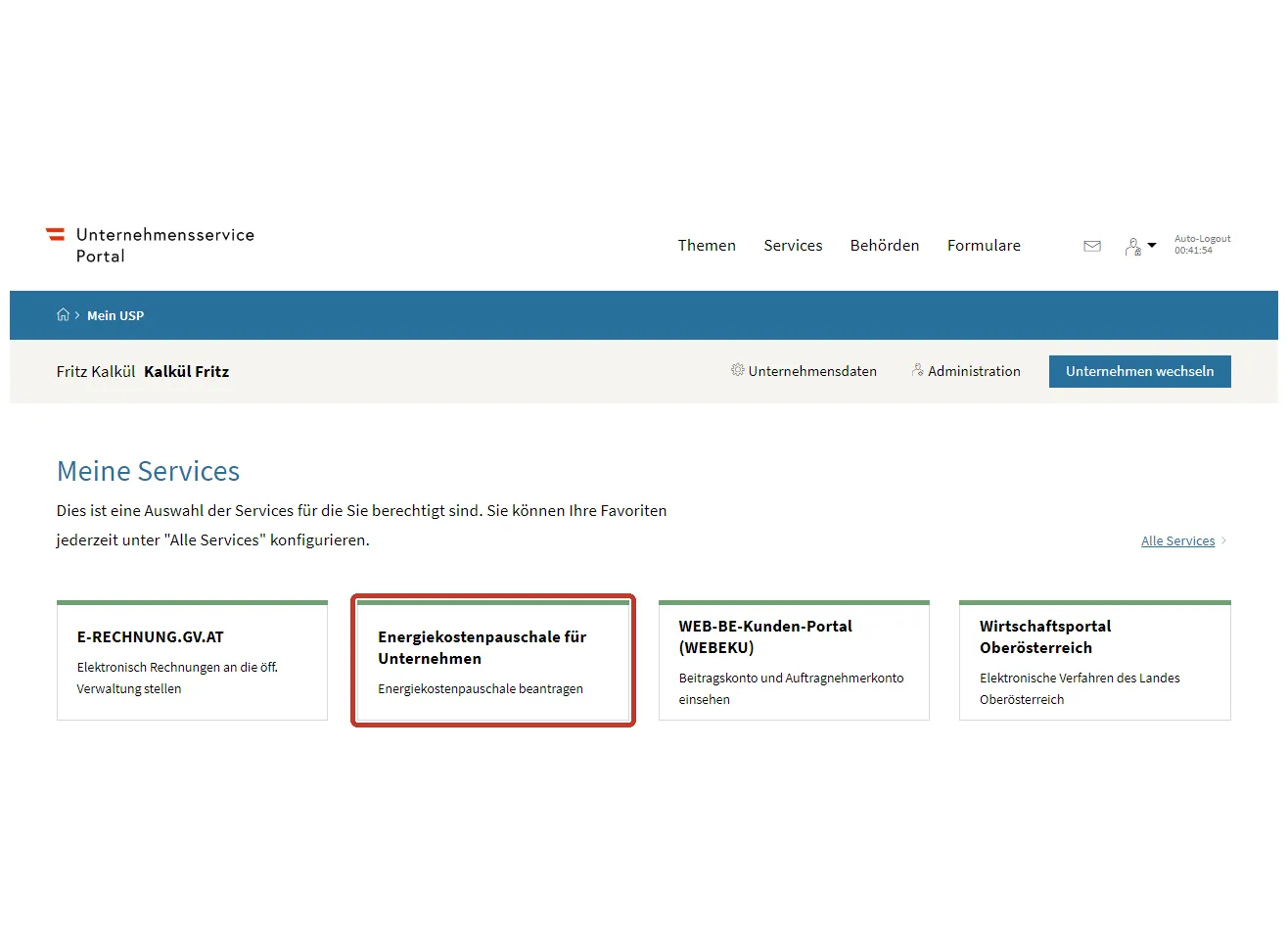 - Anmeldung im USP: Melden Sie sich im Unternehmensserviceportal an.